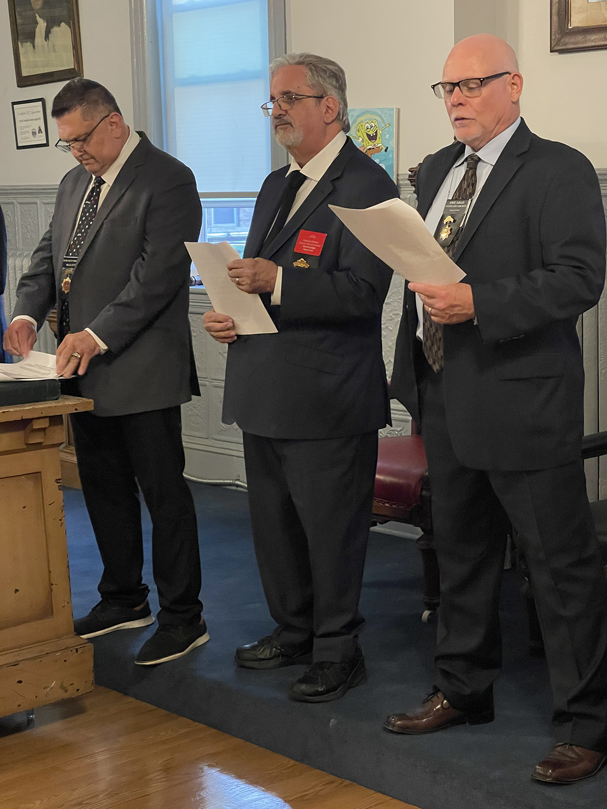 Brothers and guests came from 4 different lodges in NY State; Mineola-Pacific #125, Rockville Centre Lodge #279, Borough Park Lodge #409, and Peter Cooper Lodge No. 673. We all honored brothers and sisters who passed away this year. The Integrity Encampment provided an honor guard and a bagpiper played a solemn tribute. Guests remarked on the lives of those missed, and all were grateful they were odd fellows.